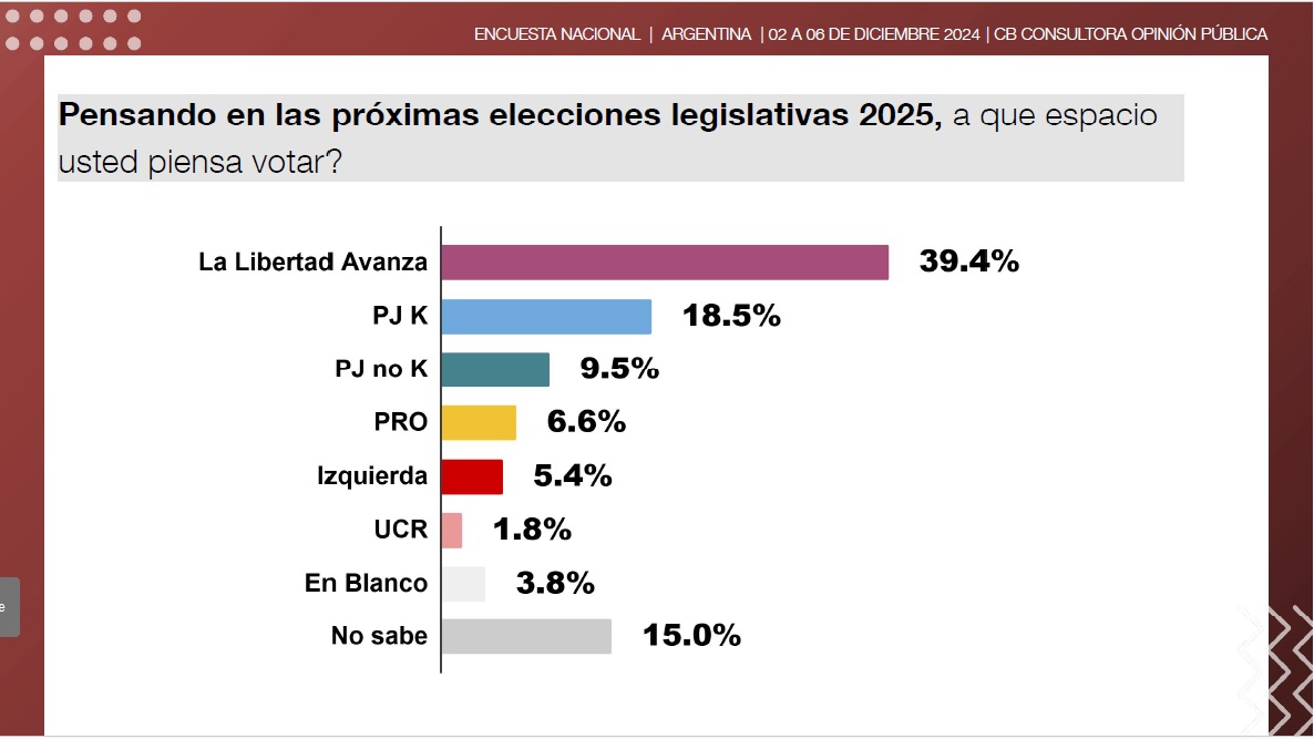 “Nosotros venimos haciendo un trabajo minucioso durante todo el año y no solo en épocas electorales y nos permite ver las devoluciones de lo que fue el primer año de gestión de Javier Milei. Sigue manteniendo más del 50% de aprobación que me parece lo más importante, tanto de gestión como también de su imagen. Si bien en términos de imagen hay una tendencia a la baja, inició en diciembre de 2023 con una imagen positiva cercana al 59%, ahora es del 51%, lo que muestra una caída de 8 puntos y eso no ha pasado con otros presidentes que, al primer año de gestión, tuvieron crecimiento o estabilización de la imagen. Pero teniendo en cuenta las medidas económicas adoptadas, el oficialismo pagó un costo político no tan caro”, comenzó explicando Martín Bazán, sub director de CB Consultora, en diálogo con FM IDENTIDAD y ARCO IRIS TV.