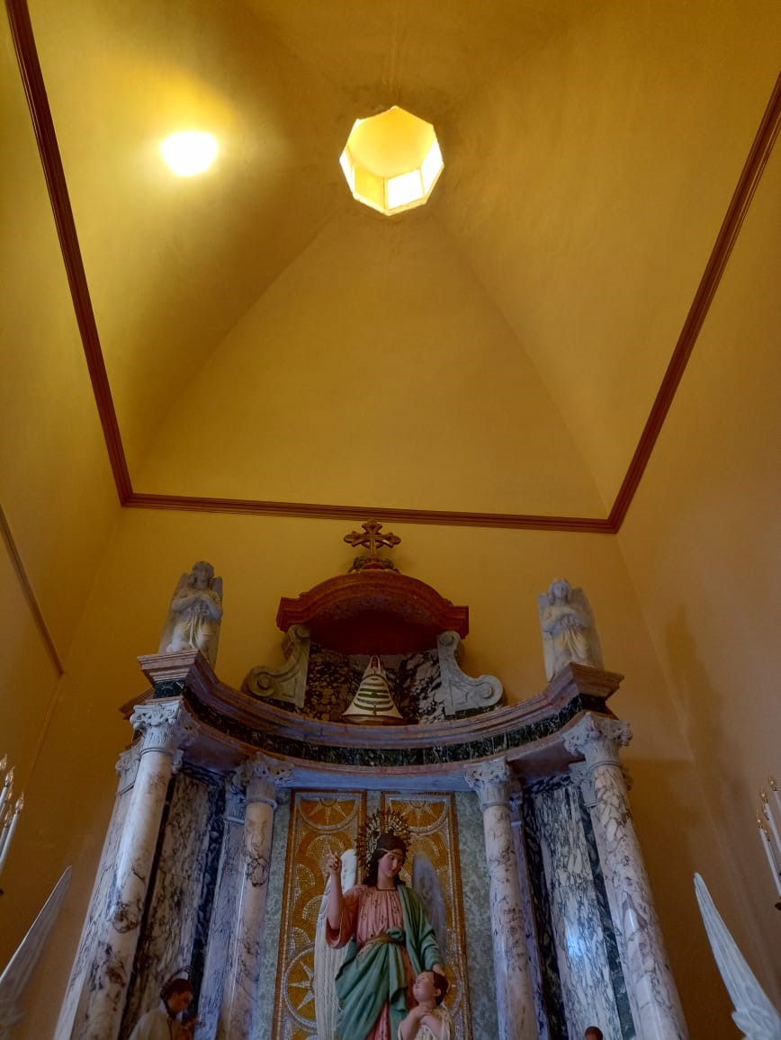 “En el techo se hizo una limpieza profunda y reparaciones de desagües, membranas. El trabajo continuará con la colocación de membrana líquida, poliuretanica, del mismo color del exterior de la Basílica en las cúpulas. Un trabajo muy minucioso que se está haciendo en todo el techo. Además, habrá dos protecciones especiales en las cúpulas de los ángeles y del Sagrado Corazón. Jorge Loser está trabajando en esa protección y los obreros de la empresa lo van a colocar”, explicó el sacerdote a FM IDENTIDAD.