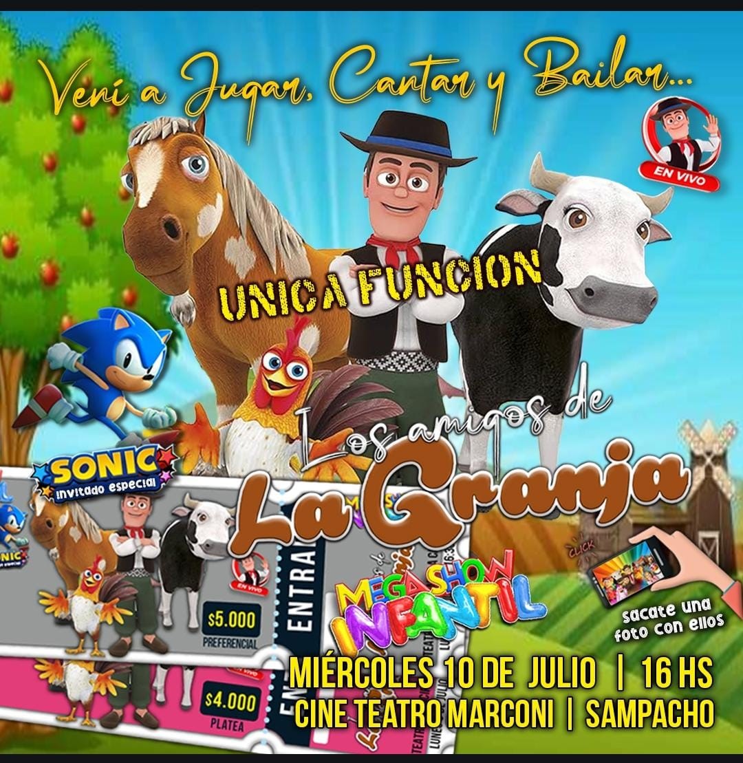 Por otra parte, el miércoles 10 de julio llegan ‘Los amigos de la granja’ a la hora 16, ‘un evento para jugar, bailar y divertirse’, dijo la presidente Viviana Tomasini a FM IDENTIDAD y a ARCO IRIS TV. Las entradas están en venta en boletería del cine de lunes a viernes de 17 a 20 h. Cuestan $4000 y $5000
