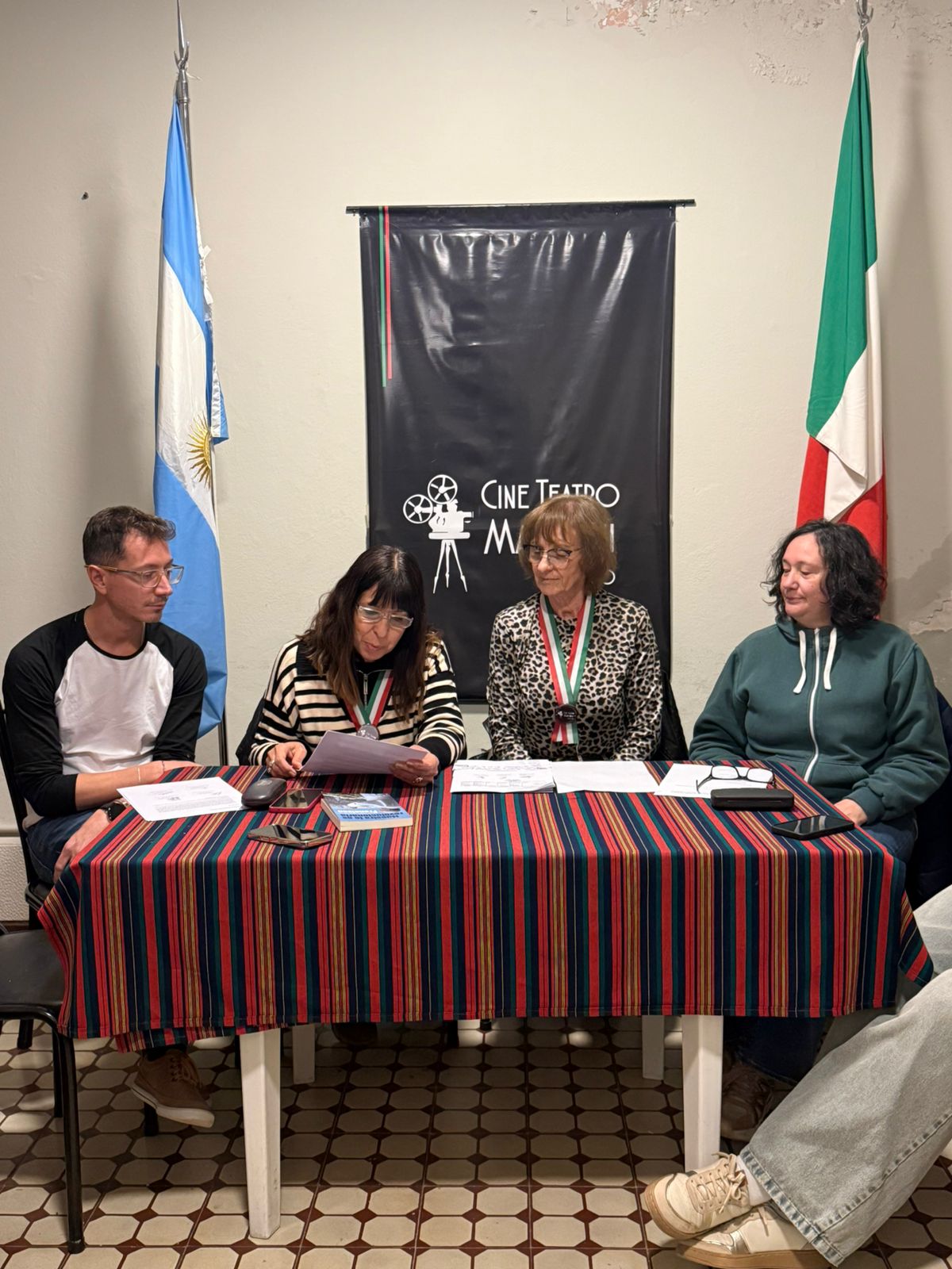 El padre Osvaldo Leone entregó un cuadro al intendente Franco Suárez y libros a representates de instituciones de Sampacho.