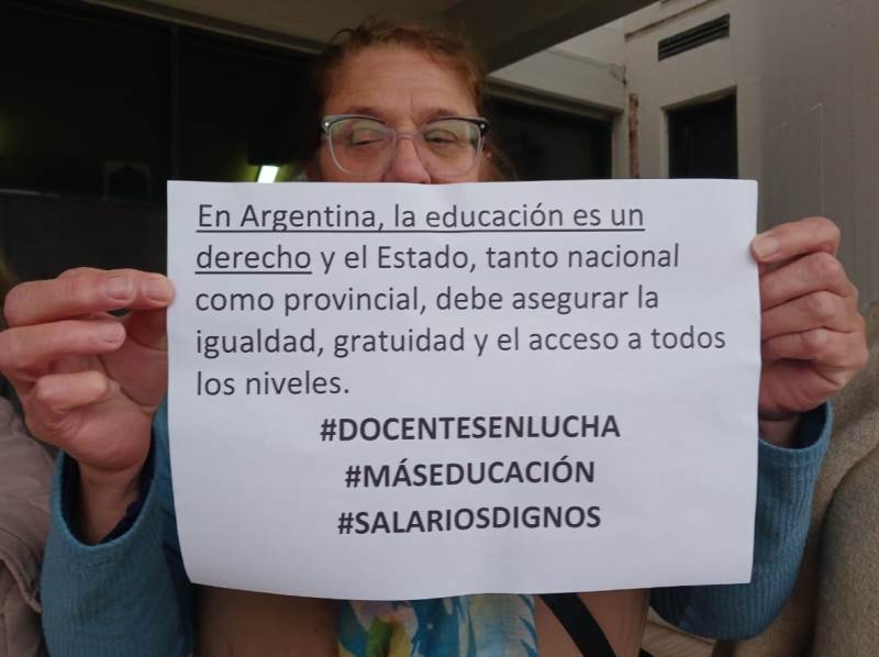 “El motivo que nos convoca es histórico y nada más y nada menos que la educación, una buena educación pasa por un docente reconocido. Siempre se dice que los derechos adquiridos no se pueden tocar sin embargo a los jubilados nos han tocado los derechos, la famosa ley 10694 nos tiene con el recorte del 82%, cuando hay campañas electorales la educación es el caballito de batalla y luego lo meten en el rincón más profundo del olvido. La ley se tiene que derogar y lo ideal es que uno se jubile con los aportes que hizo, nosotros aportamos 25, 30 o más años y tenemos que estar sufriendo que alguno venga con un decreto y nos derogue el porcentaje”, dijo Hortencia Juárez en diálogo con FM IDENTIDAD.