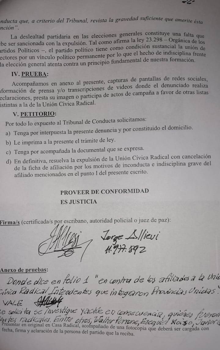 PIDEN LA EXPULSIÓN DE RECONOCIDOS DIRIGENTES E INTENDENTES DE LA UCR