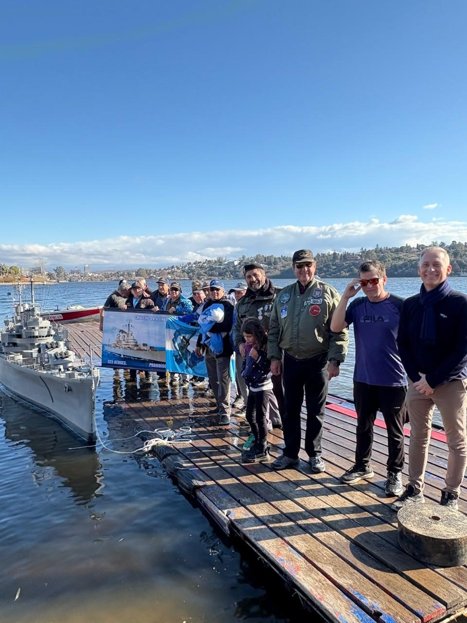 La réplica del crucero ARA General Belgrano navegó por las aguas del lago San Roque frente a la presencia de Veteranos de Malvinas, vecinos, turistas, entre ellos el sampachense Sergio Peruchin.