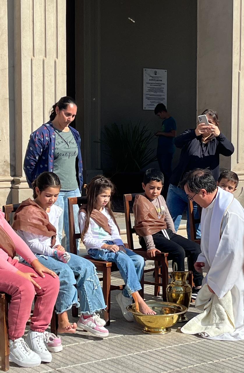 Se realizó el tradicional lavatorio de pies. Además, se bendijeron los panes. El Padre Fernando junto a catequistas coordinaron la actividad.